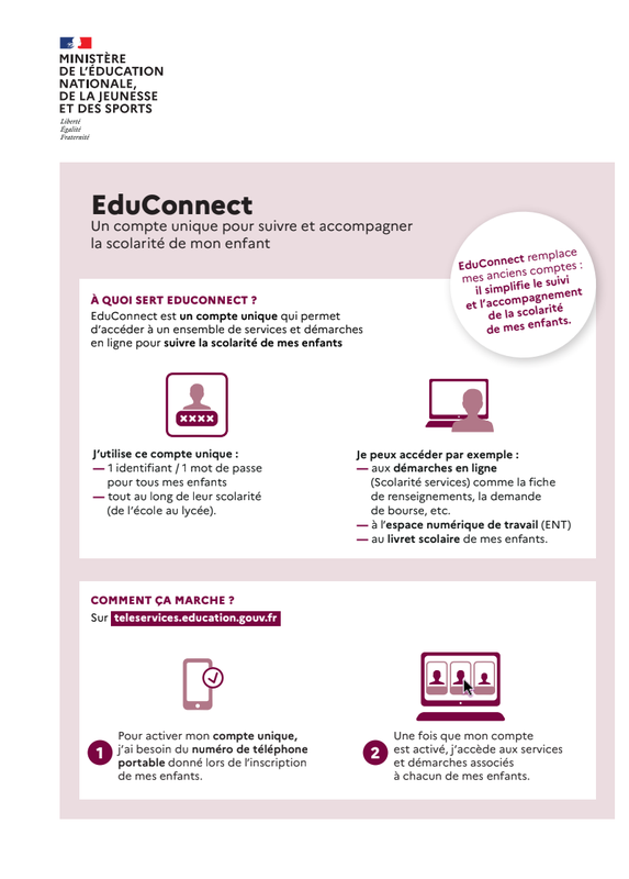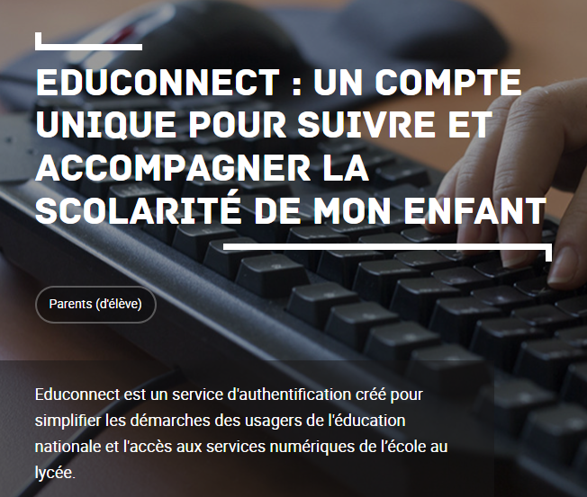 Educonnect est un service d'authentification créé pour simplifier les démarches des usagers de l'éducation nationale et l'accès aux services numériques de l’école au lycée.